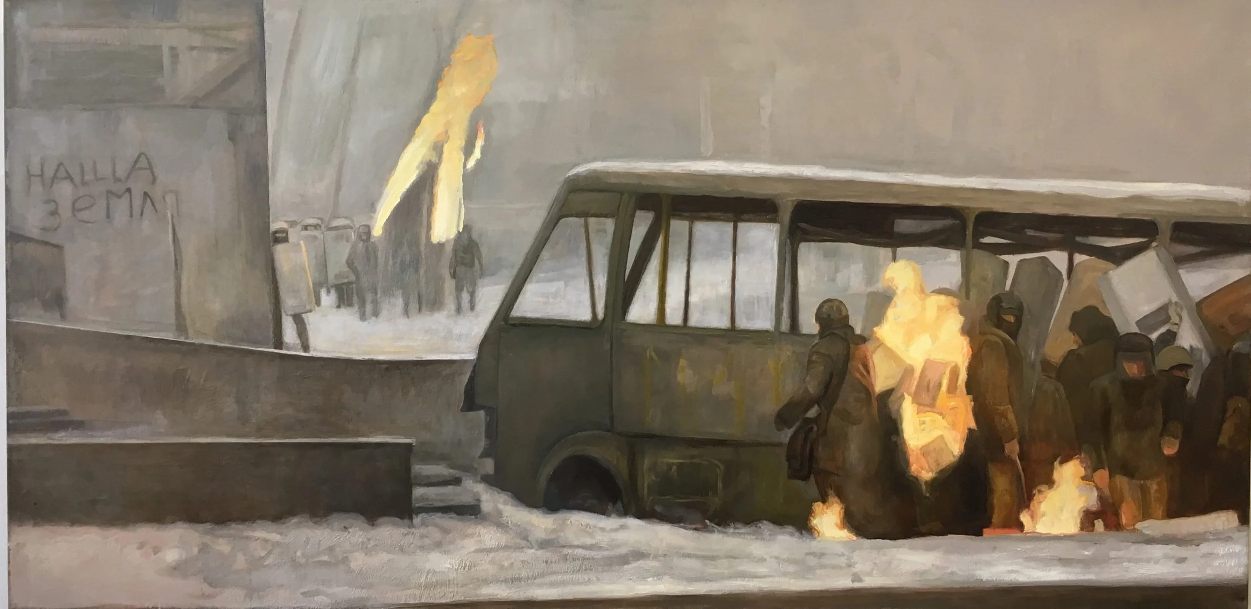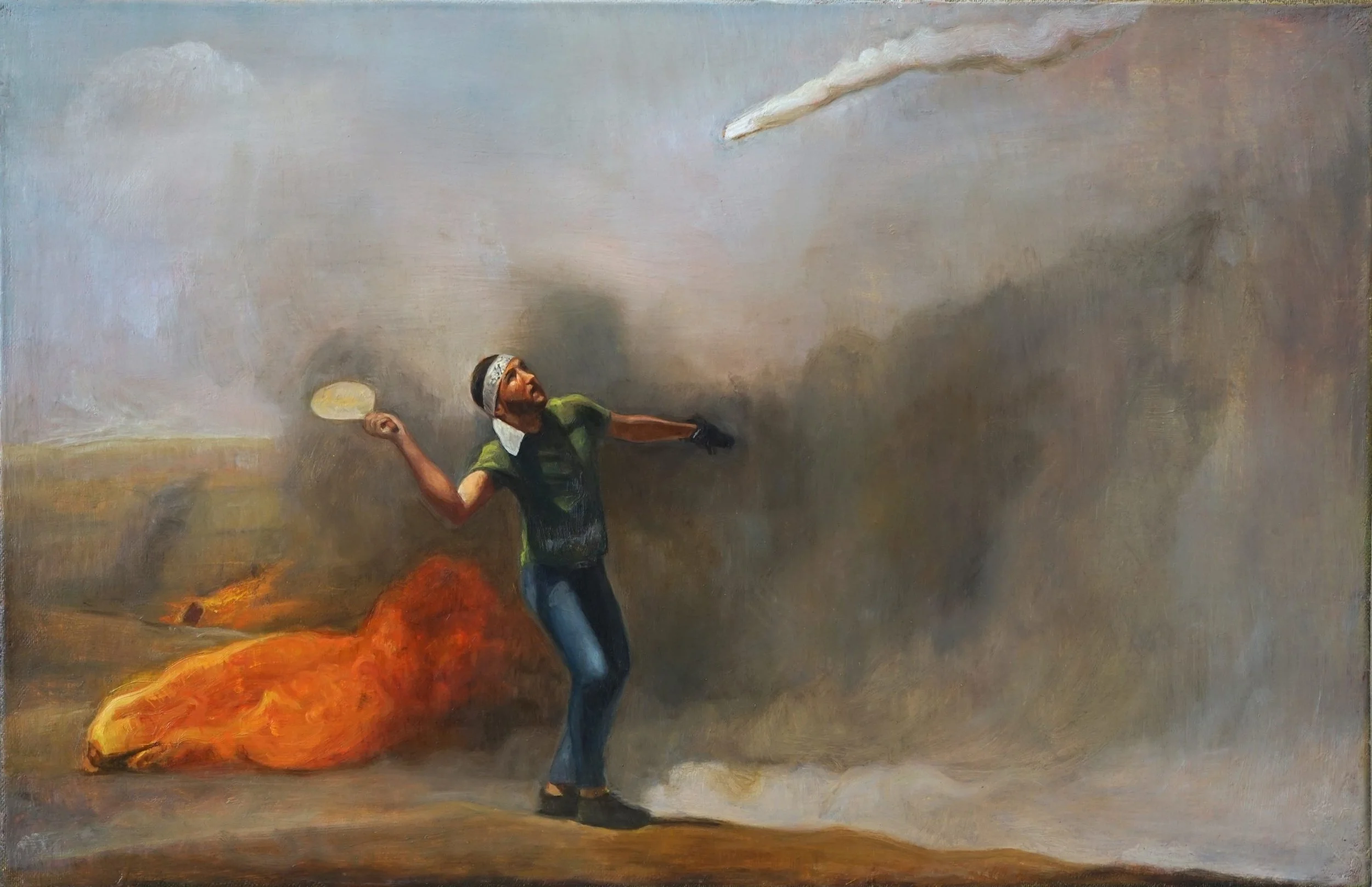 Those who light the fuses unleash a force far beyond their control — a force that has ample chance, as the show title argues, to be “returned to sender.” This is the most chilling political message of all: fire begets fire, violence begets violence. The specific political situations of these paintings are simply their surface stories. We are in Kiev, Ukraine, and in Ferguson, Missouri, and on the border of Gaza, but all the while we are knocking on the door of the deeper mysteries of nature — and humanity — inherently Romantic, ever-forming, ever destroying, ever creating, chaos.”
